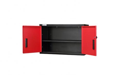 Wall storage cabinets are always a necessity in the garage .The Geneva all steel welded construction, two door locking cabinet is designed to fit on the wall of your garage. It features a cam type locking mechanism with two point internal locking bar, recessed handles, piano type hinge, one fully adjustable shelf powder coated in a beautiful two toned red and black textured finish.
