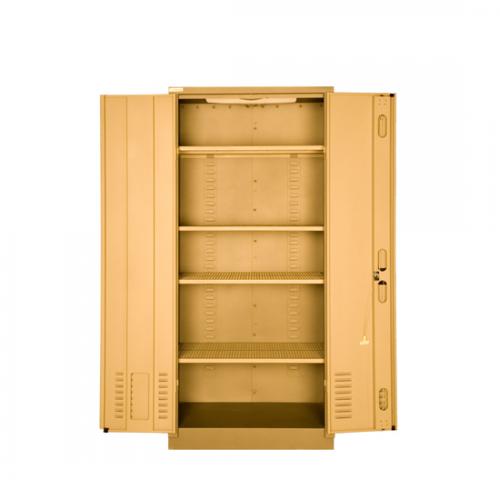 This cabinet is for the active person, a must have for athletes to store all their equipment. An overhead fan is integrated into this unit with perforated shelving and door vents for maximum air circulation. All welded steel construction with aluminum forged lockable handle and adjustable legs.