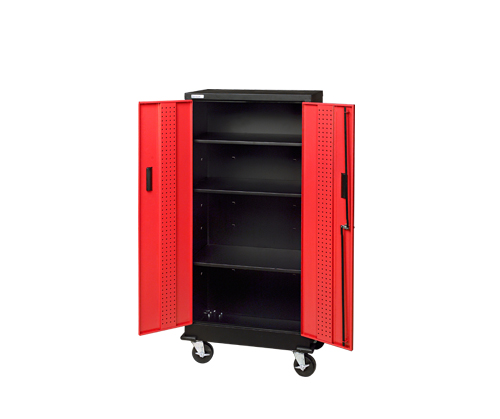 You will be impressed with the amount of storage capacity in our tall storage lockers Standing at 5 feet in height and with the 32,400 cubic inches of capacity this is sure to be a favorite for most garages and work shops. Our mobile storage locker has three full width shelves with seven adjustment points, Heavy duty T type locking handle, and four swivel casters.