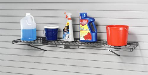 Great for Gas cans and other items that you would like out of reach from children but still want accessible. A four foot shelf is perfect for a clean garage!! Includes support brackets for increased weight capacity.