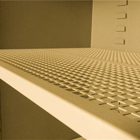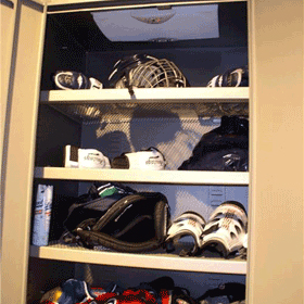 This cabinet is for the active person, a must have for athletes to store all their equipment. An overhead fan is integrated into this unit with perforated shelving and door vents for maximum air circulation. All welded steel construction with aluminum forged lockable handle and adjustable legs.
