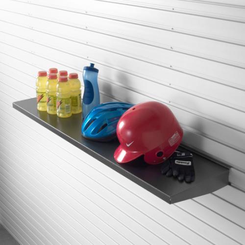 The 48 in. wide x 2.5 in. high x 12 in. deep solid shelf holds heavy items and has a weight capacity rating of 50 lbs. per shelf, based on lab test of 200 lbs. per shelf.
