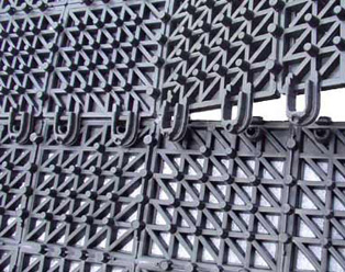 Polypropylene with a static load rating of 16,000 lbs /sq. foot.