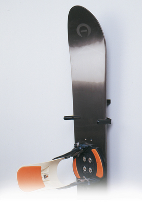 An ingenious way to store skateboards, snowboards and wakeboards flat against the wall.
