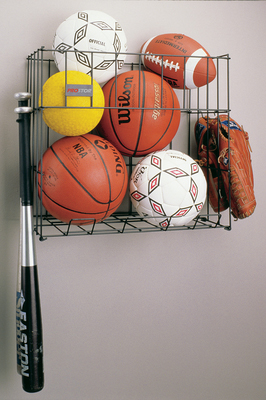 Keep all the sporting goods organized and in reach. Great for kids and can be mounted at any height.