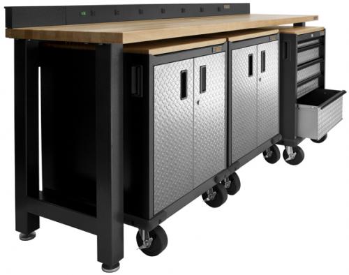 The seven outlets on the front provide convenient power sources for any location on the bench. Plug orientation and side mounting are spaced to allow for bulky transformer plugs. The two rear outlets can be utilized for applications that are rarely unplugged. The Gladiator® Power strip is 6 feet long. With two 12 in. Tool Caddies attached it spans the full length of the 8 foot Modular Workbench. Great for screwdrivers, pliers, scissors and other hand tools. Tool Caddies can be attached to the Gladiator® Power strip at each end to serve as an integrated backstop or they can hang on Gladiator® Wall Systems.